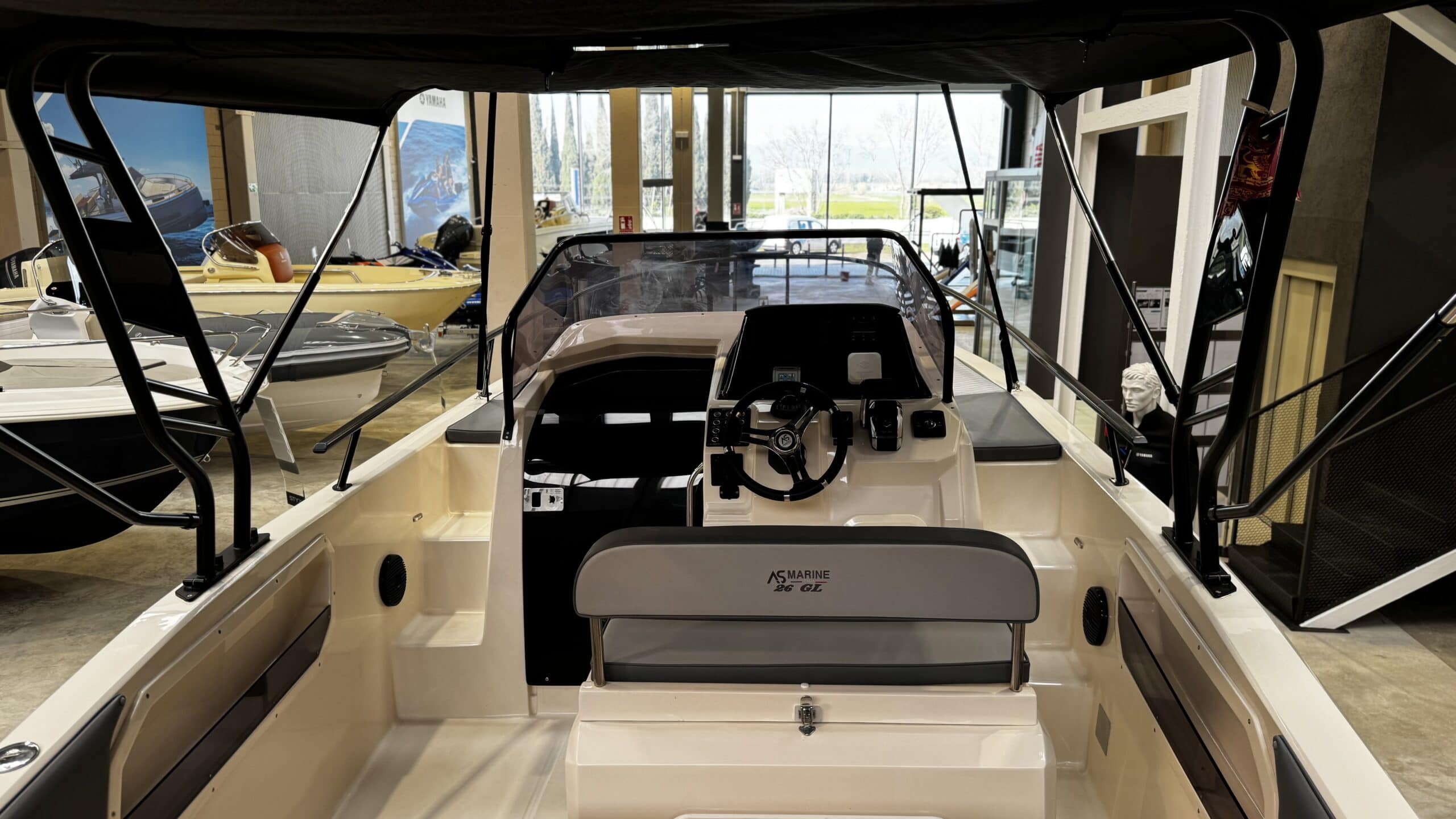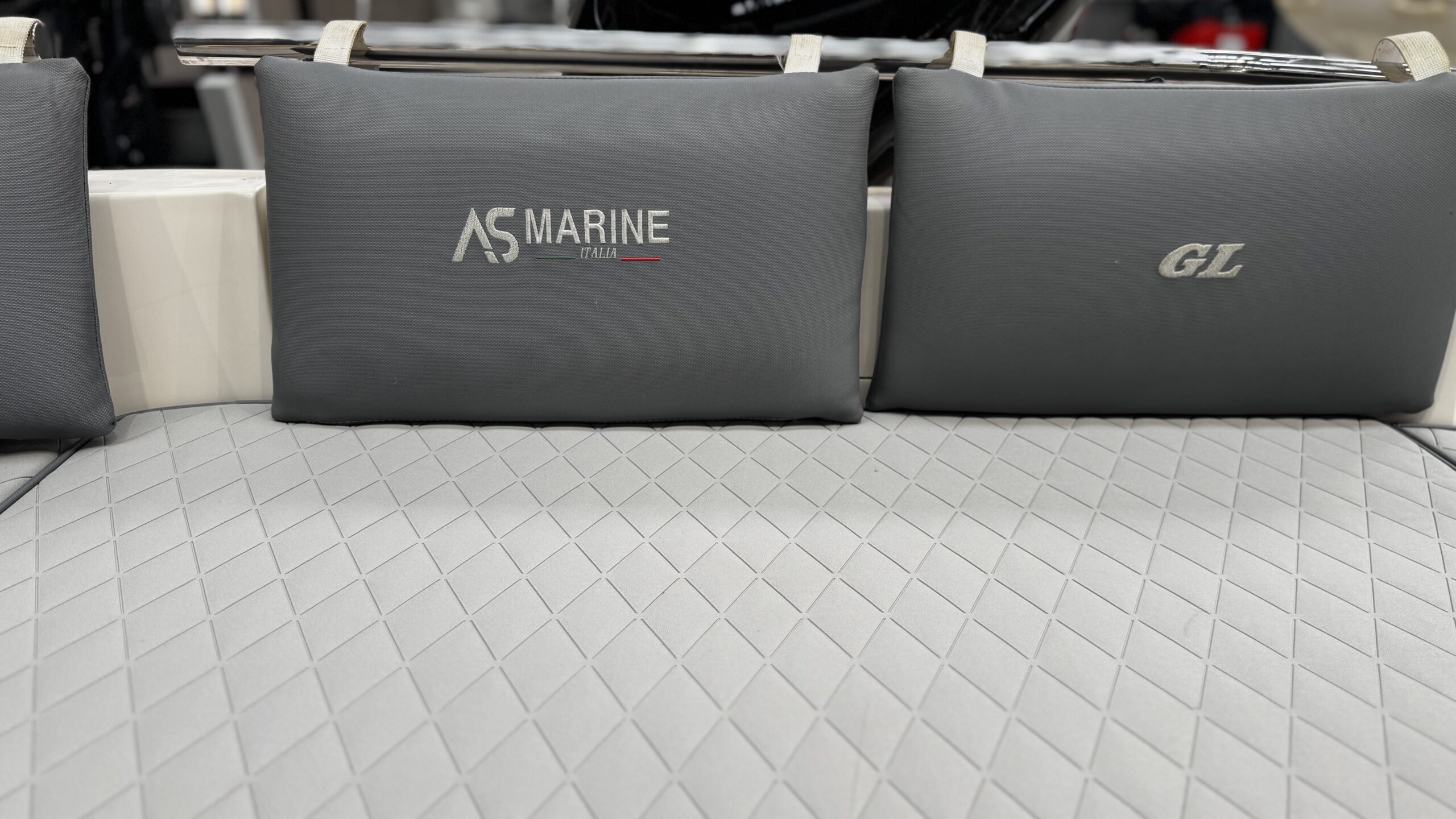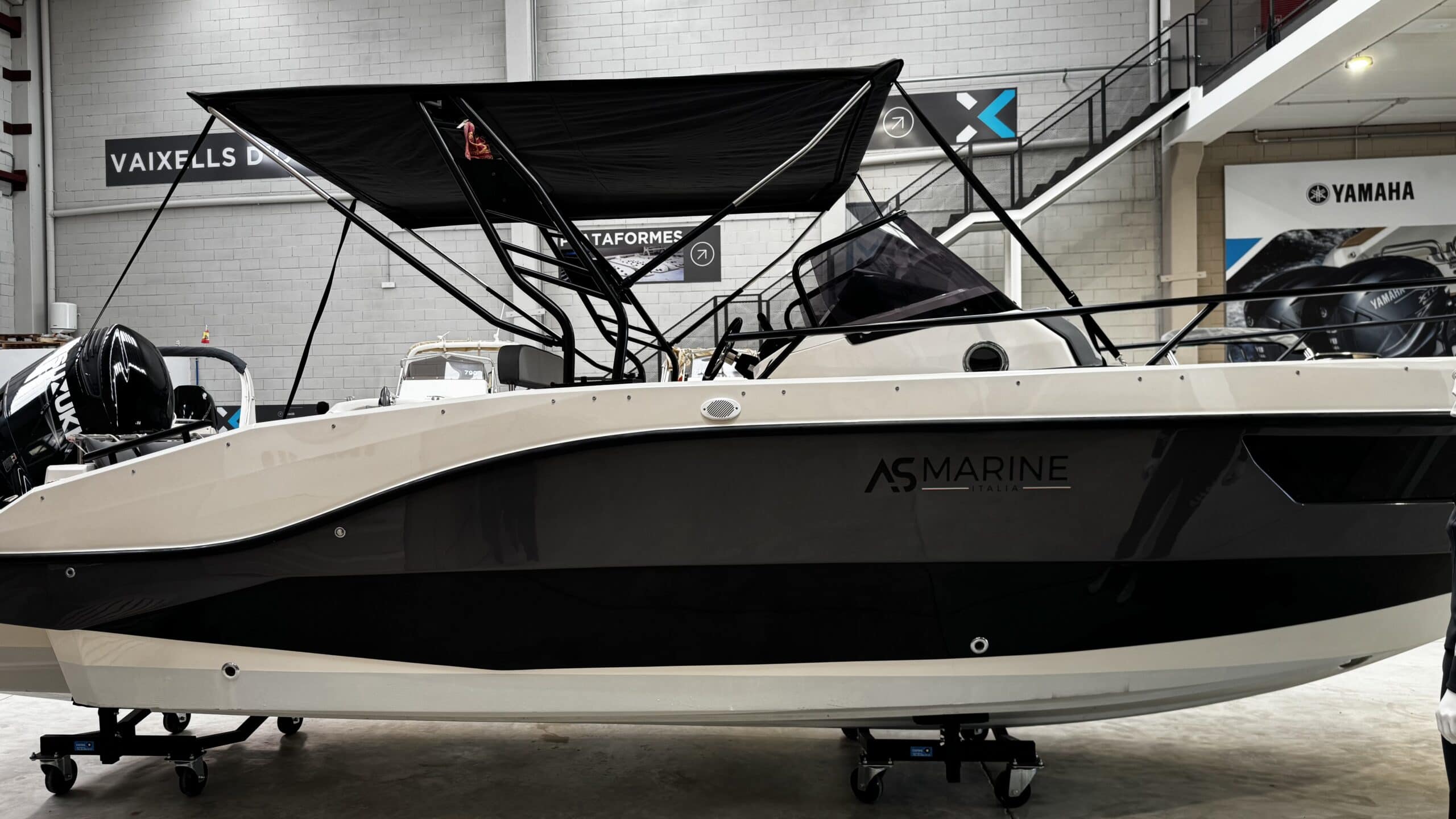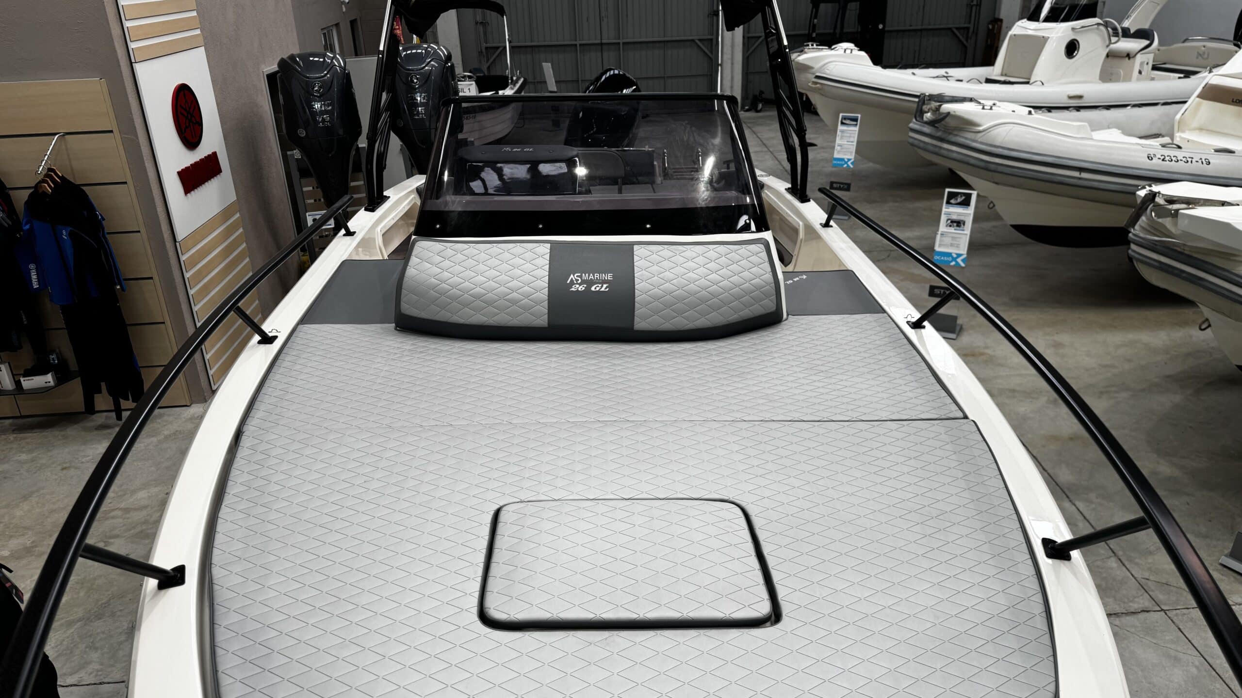 AS MARINE 26 GL. Una embarcació elegant i esportiva, dissenyada per a una navegació còmoda i segura. La seva generosa eslora i mànega permeten una excel·lent distribució de l’espai tant a proa com a popa. Compta amb un gran solàrium a proa, una zona d’estar amb taula central i una consola de timó completa i ergonòmica, ideal per gaudir de llargues jornades de navegació amb total comoditat.