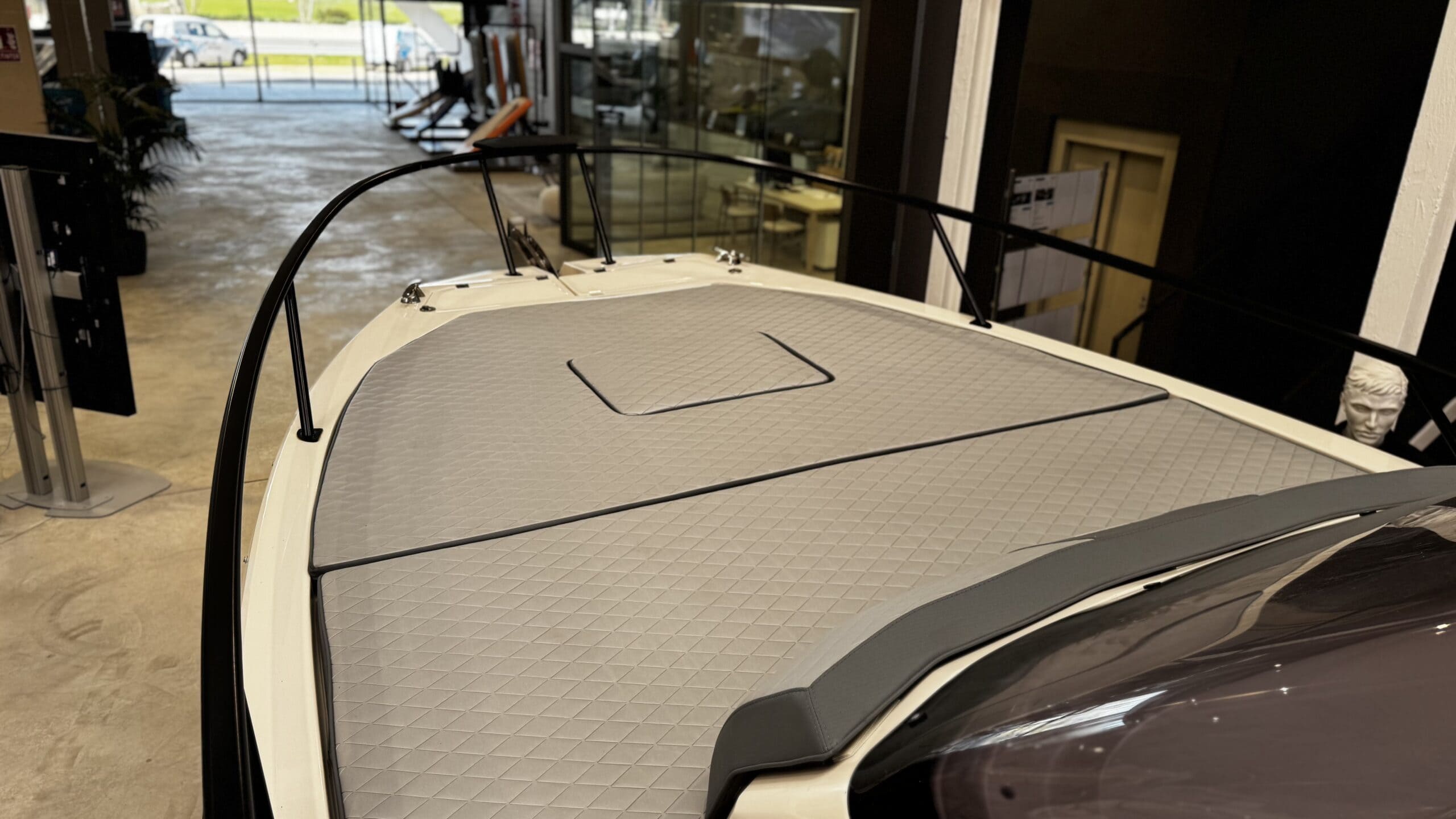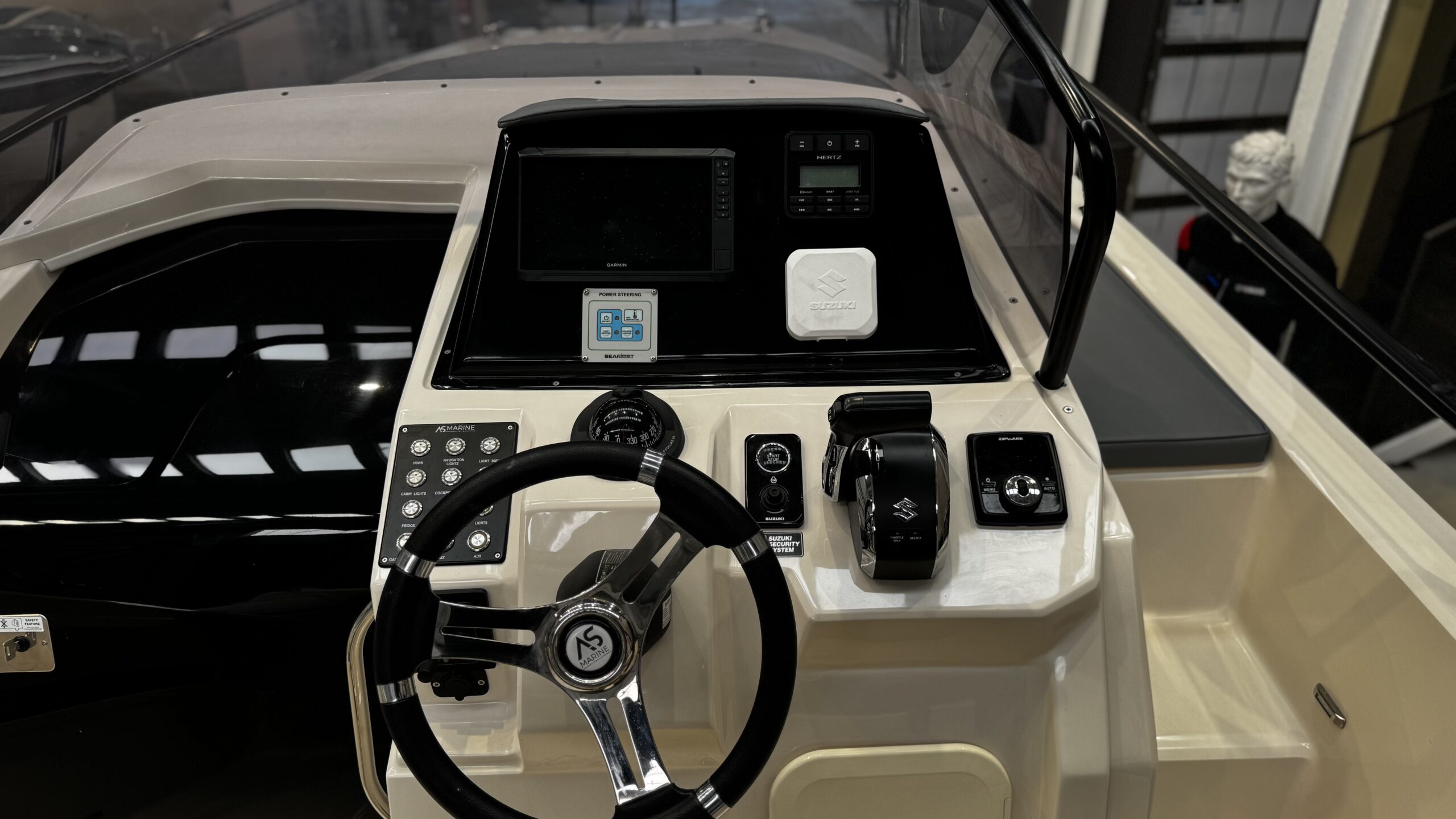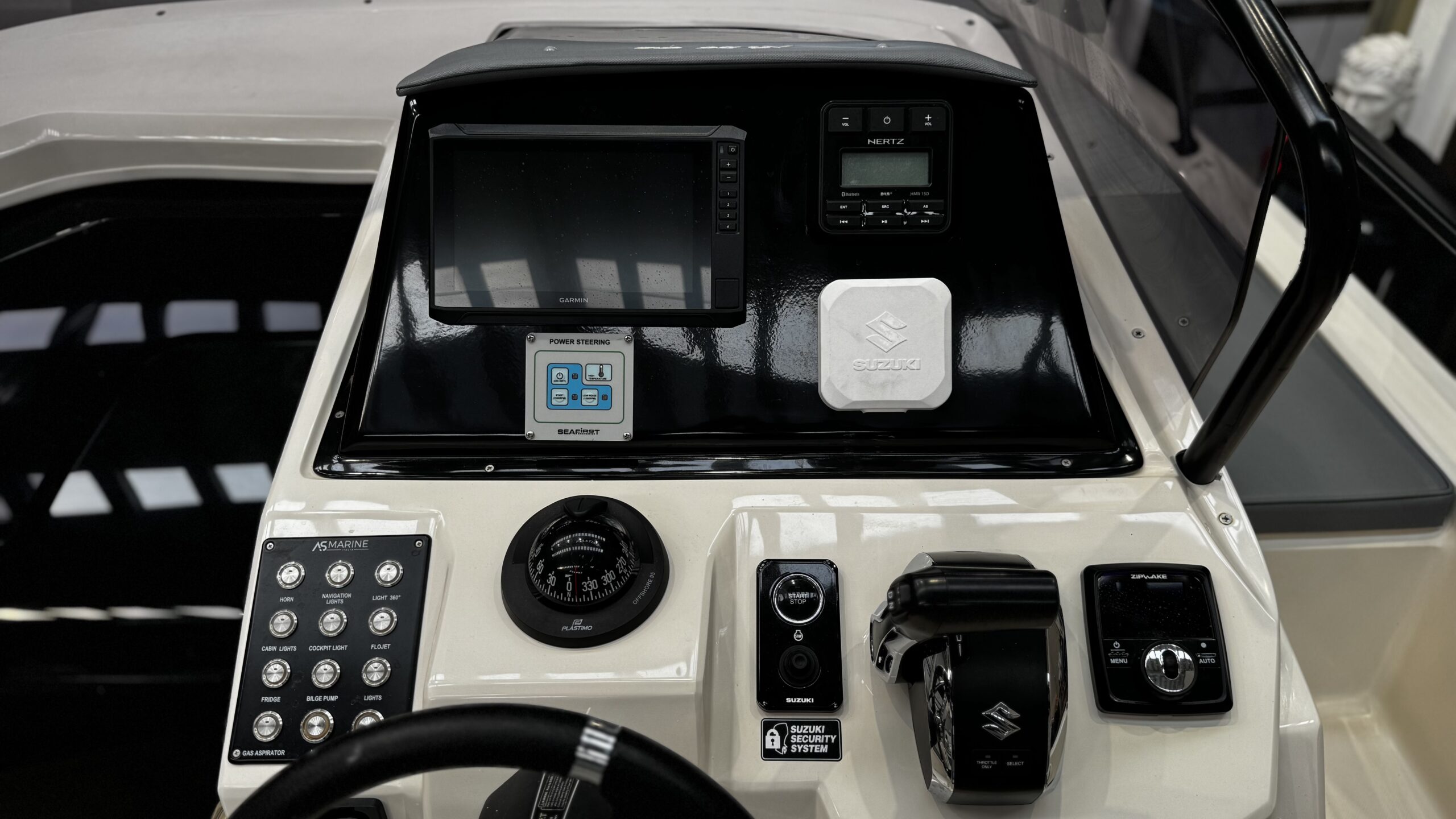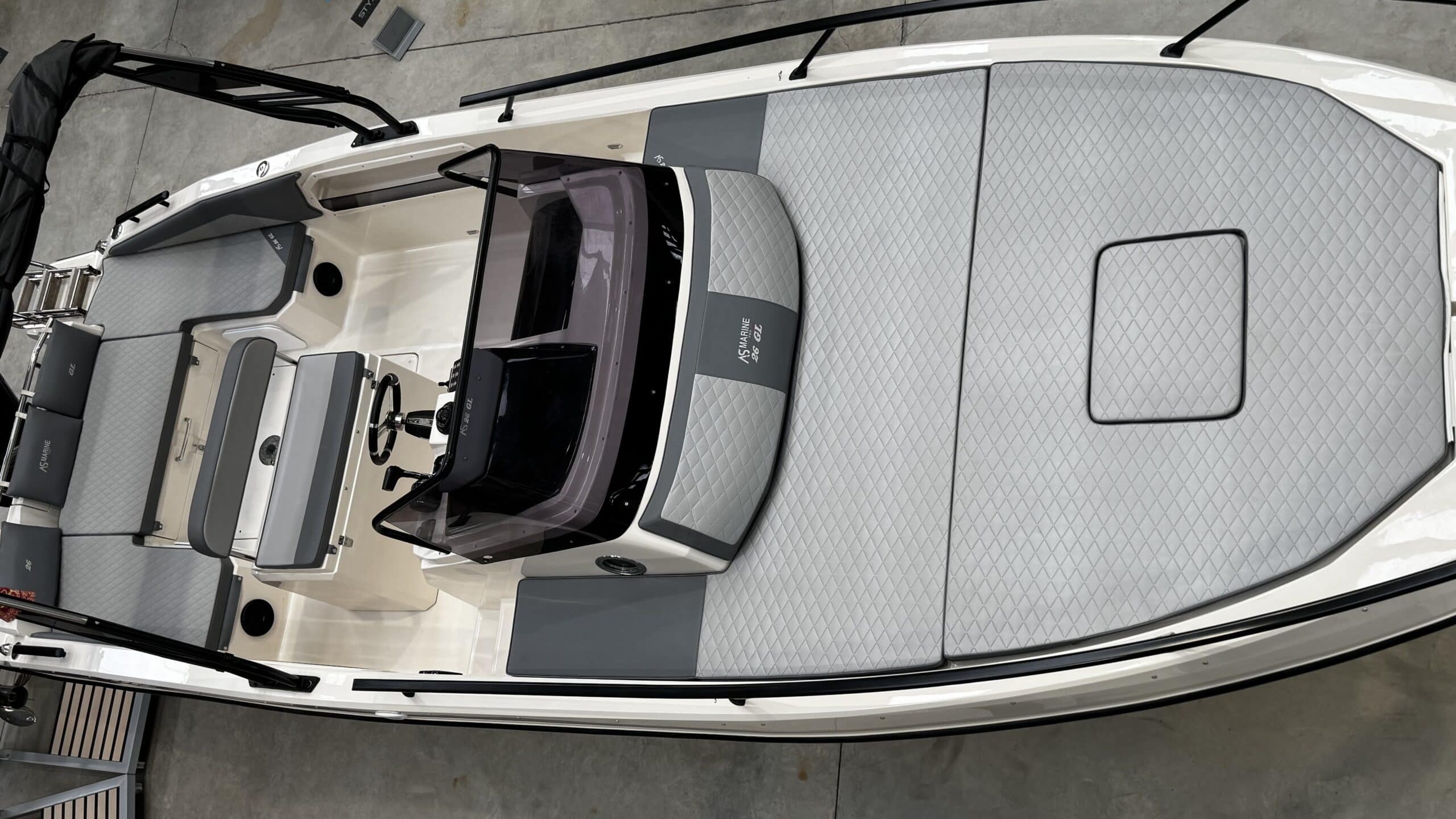 AS MARINE 26 GL. Una embarcació elegant i esportiva, dissenyada per a una navegació còmoda i segura. La seva generosa eslora i mànega permeten una excel·lent distribució de l’espai tant a proa com a popa. Compta amb un gran solàrium a proa, una zona d’estar amb taula central i una consola de timó completa i ergonòmica, ideal per gaudir de llargues jornades de navegació amb total comoditat.