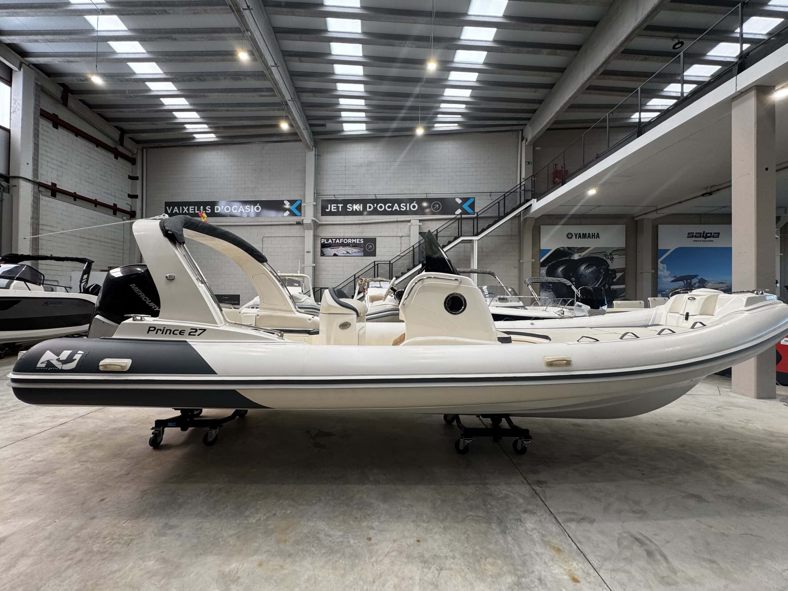Nuova Jolly Prince 27 Comfort. Embarcació semirígida d’alta gamma, reconeguda pel seu excel·lent comportament en navegació, robustesa estructural i acabats premium. La Prince 27 Comfort combina esportivitat i confort, oferint amplis espais tant a proa com a popa, ideals per gaudir del mar amb total seguretat.