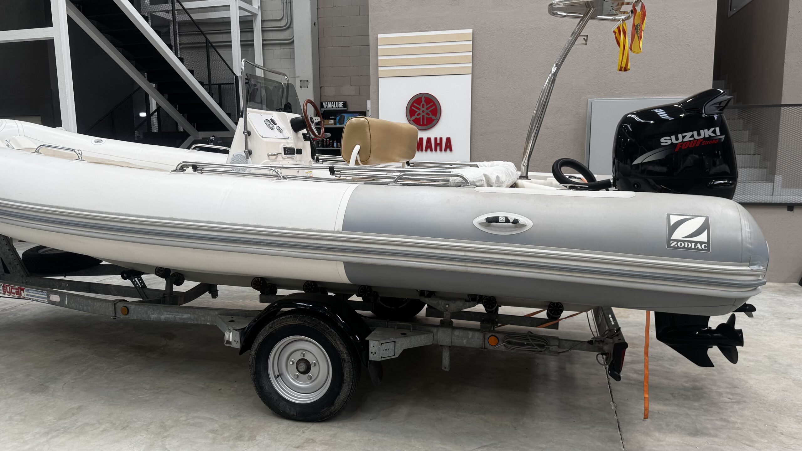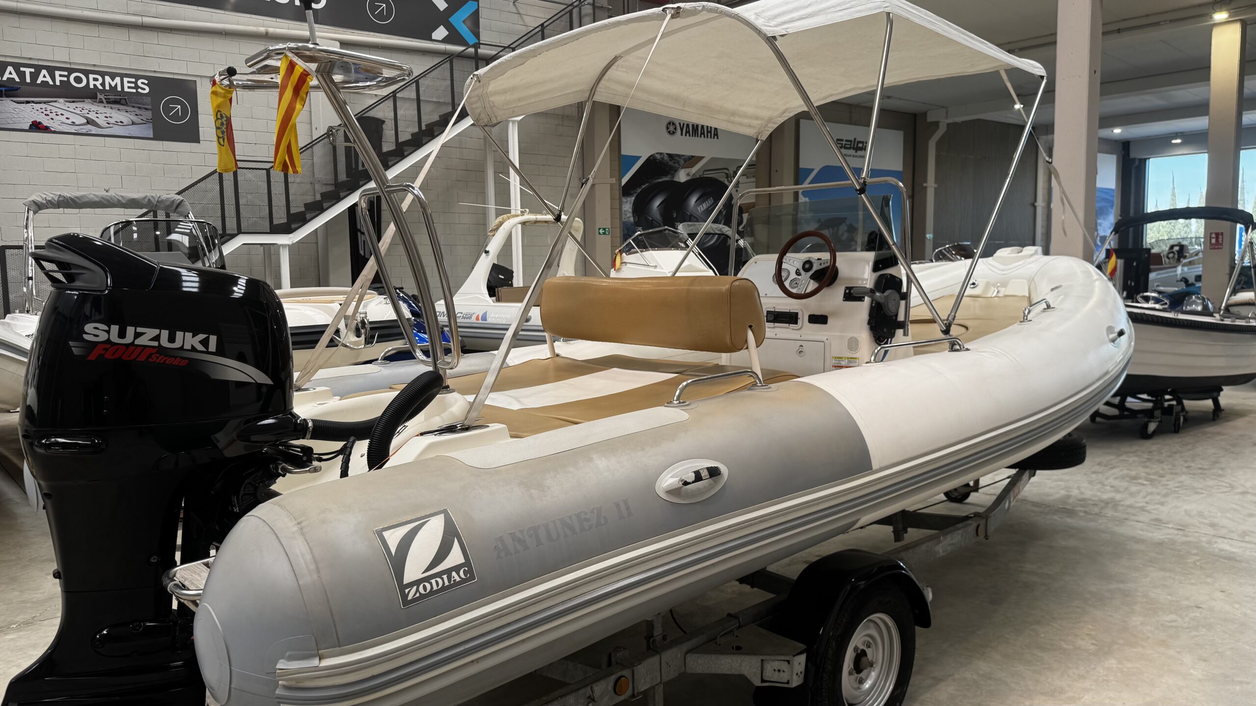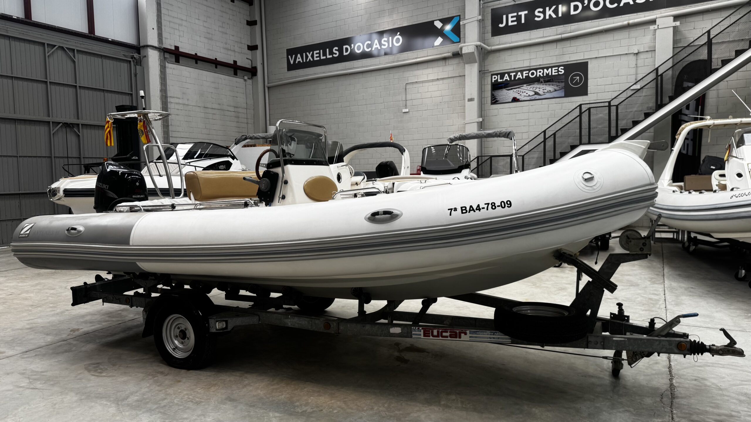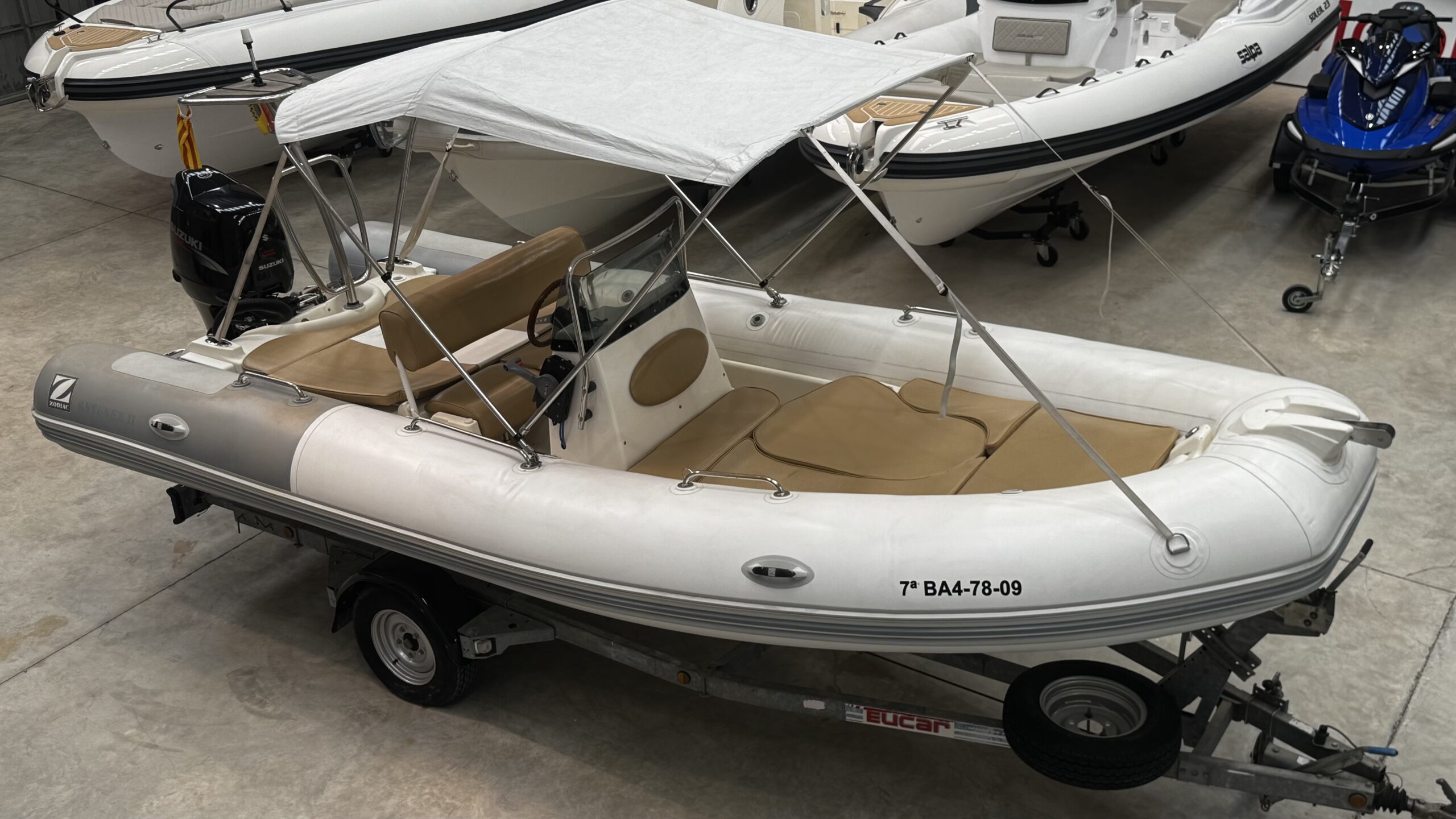 Magnificent 2009 Zodiac Medline II, a semi-rigid inflatable boat that combines comfort, style, and ease of handling. Ideal for family outings, coastal cruises, or water sports, it stands out for its stability and high-performance hull. The boat is sold with its trailer.