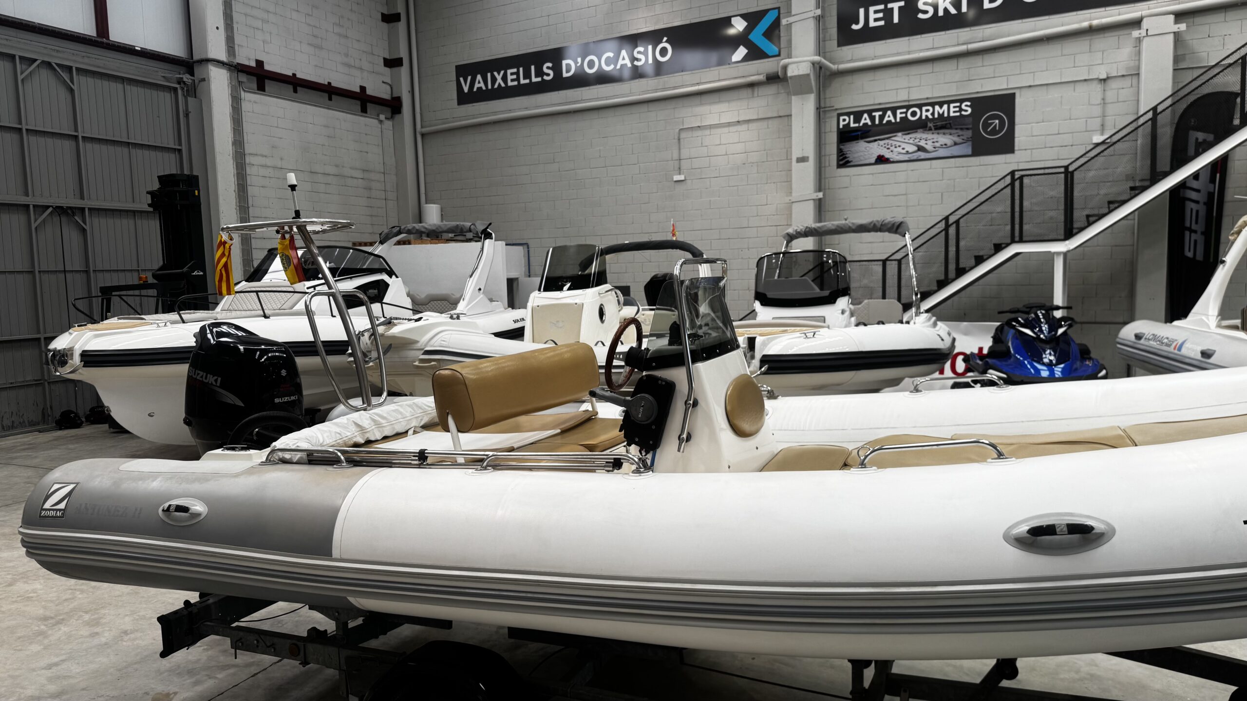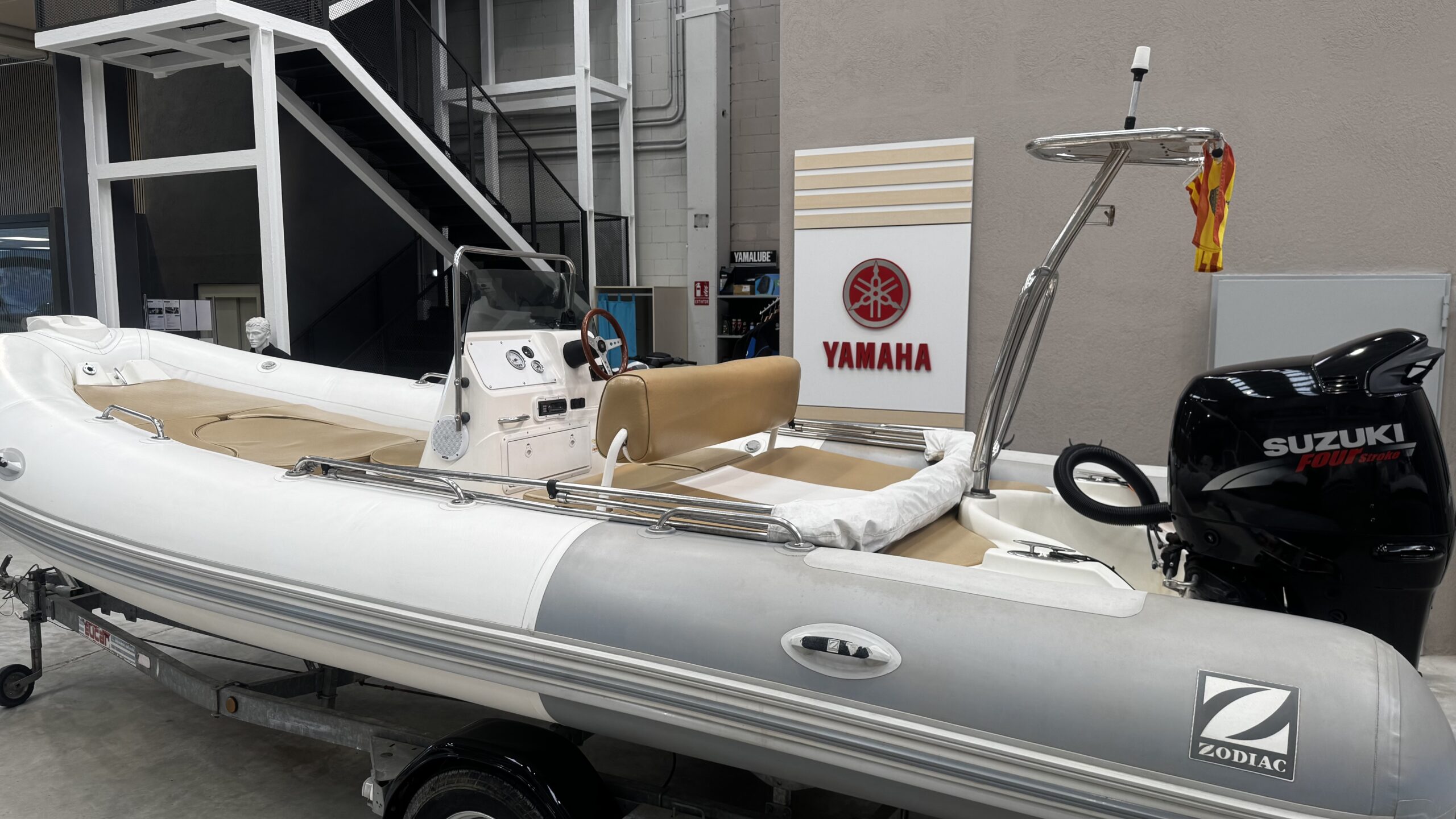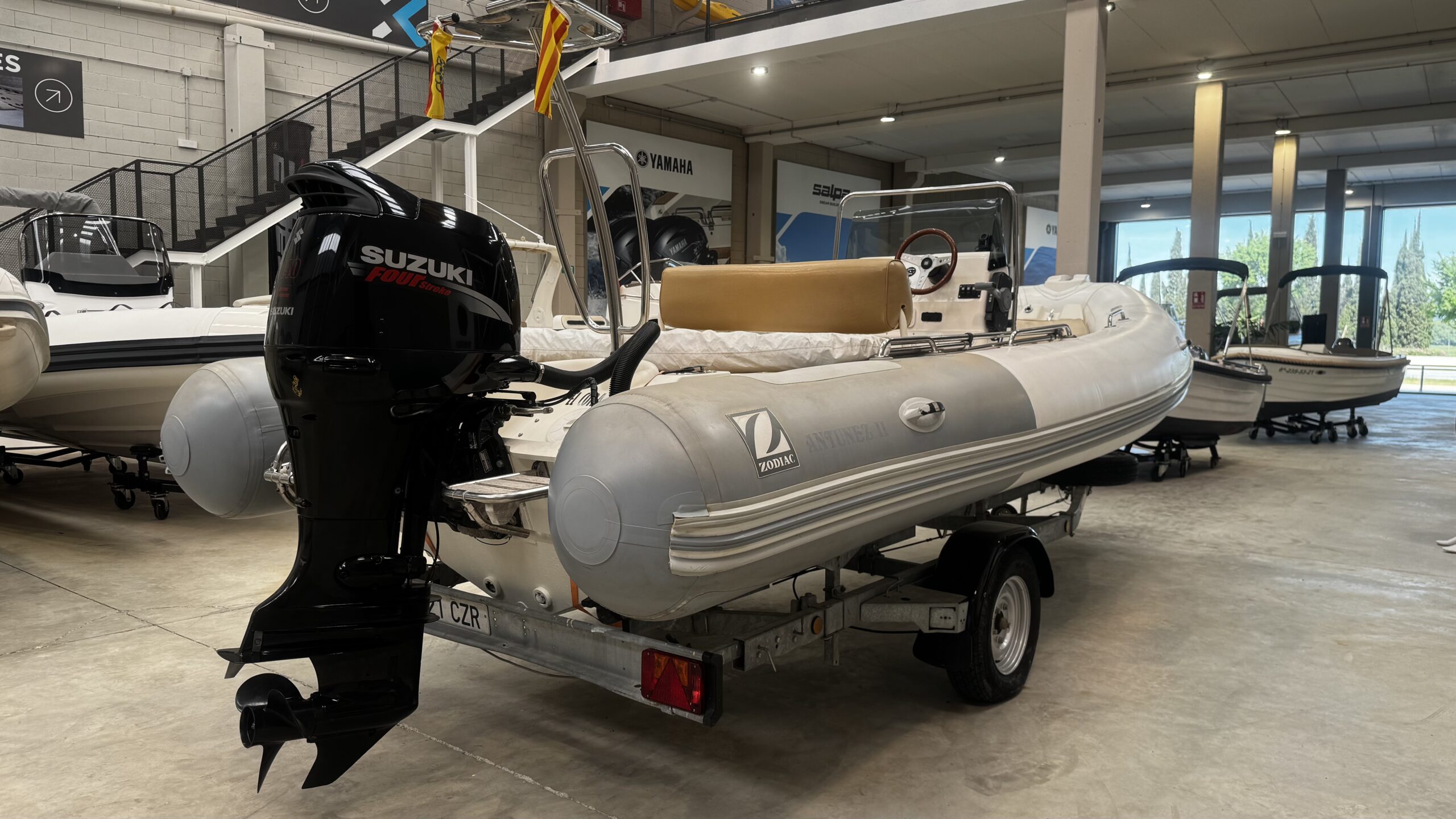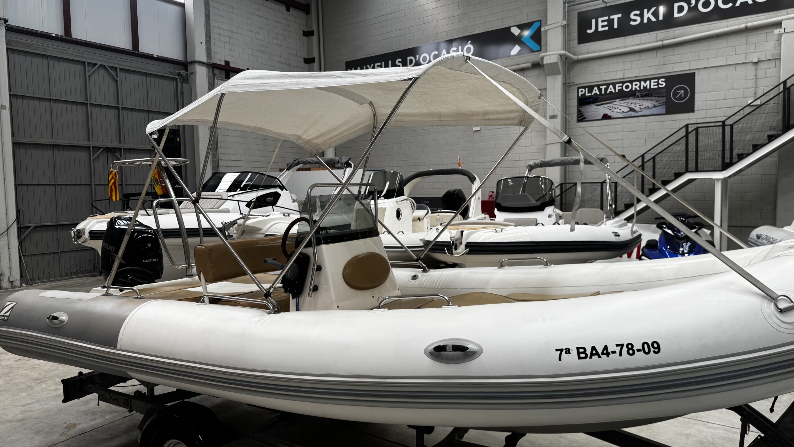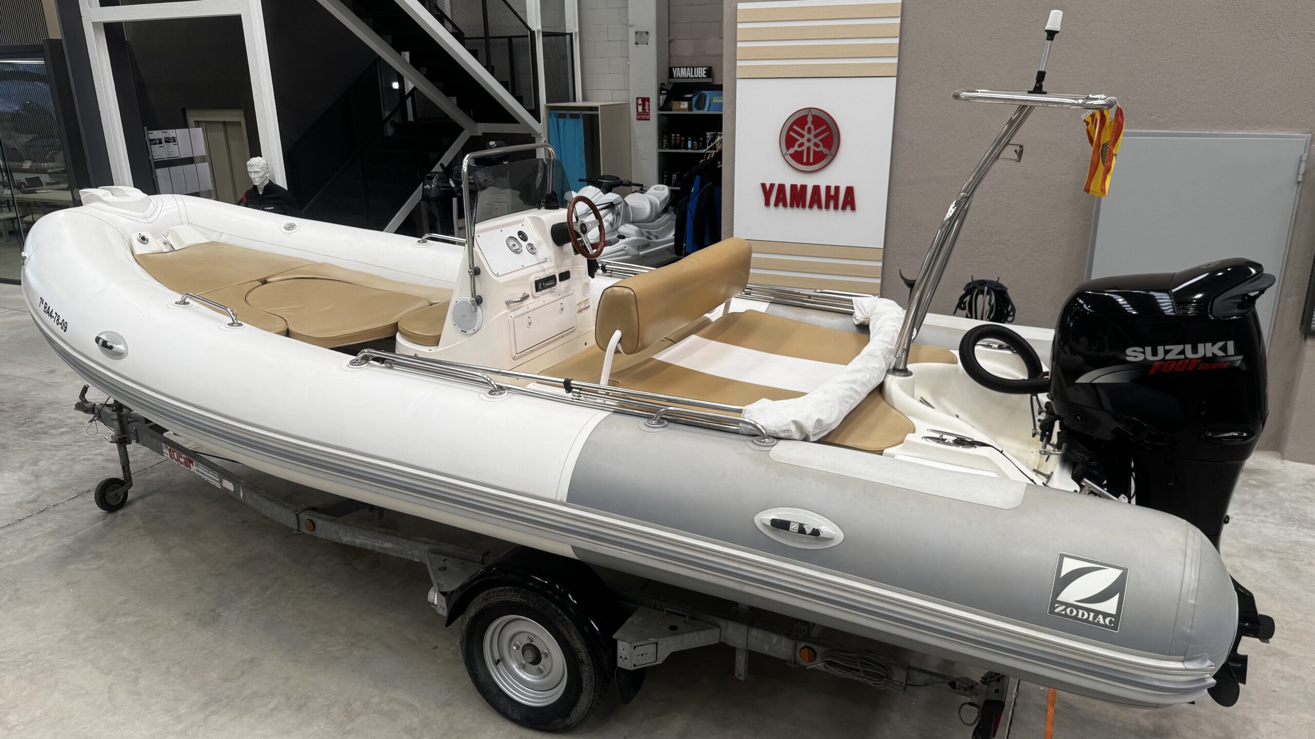 Magnificent 2009 Zodiac Medline II, a semi-rigid inflatable boat that combines comfort, style, and ease of handling. Ideal for family outings, coastal cruises, or water sports, it stands out for its stability and high-performance hull. The boat is sold with its trailer.